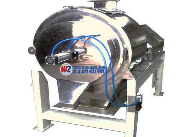 本機篩網(wǎng)為圓筒壯分布在機體內(nèi),物料由螺旋葉片送入篩網(wǎng)體,網(wǎng)內(nèi)有高速旋轉(zhuǎn)葉片,通過葉片產(chǎn)生的足夠大的離心壓力及向前推進的旋風來迫使物料通過篩網(wǎng)。調(diào)節(jié)定時器,控制汽缸的開啟時間,可得到物料在篩網(wǎng)體內(nèi)的不同的時效。調(diào)節(jié)葉片與篩網(wǎng)之間的距離,可改變物料在篩網(wǎng)體內(nèi)的通過率。