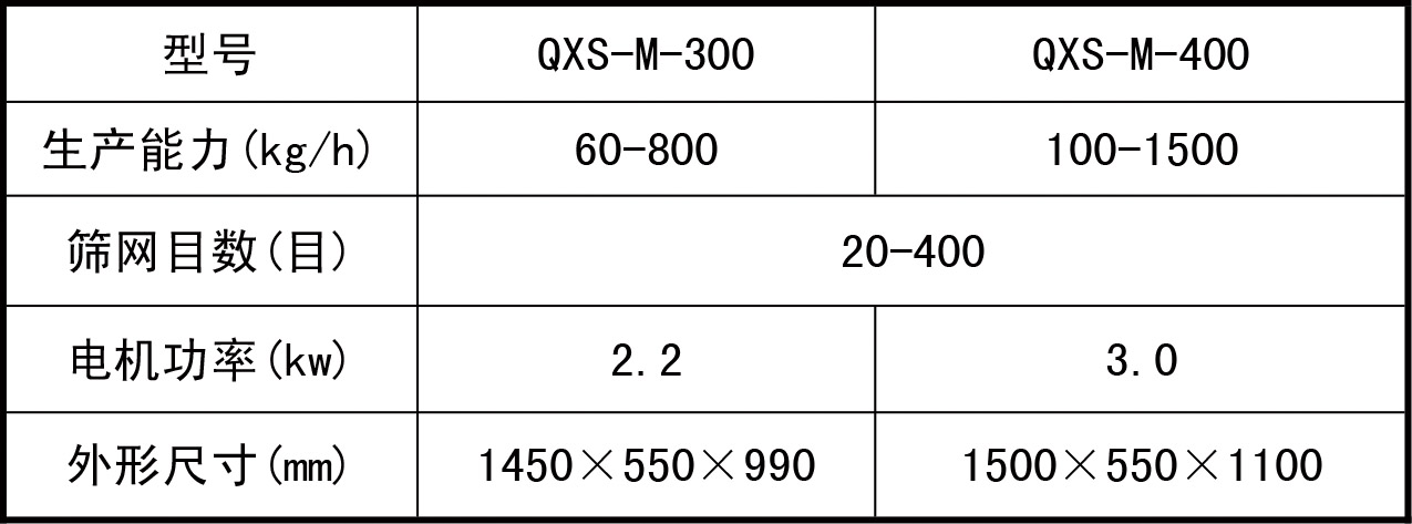 ?QXS-M密閉型氣旋篩技術參數(shù)